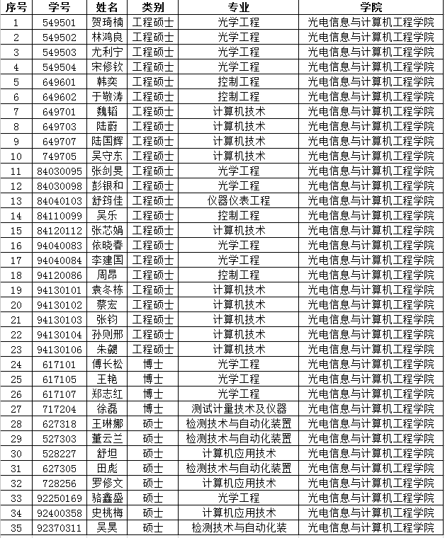 根据教育部第21号令《普通高等学校学生管理规定》和《上海理工大学研究生学籍管理规定》(上理工研[2011]16号)的文件精神“学业成绩未达到学校要求或者在学校规定年限内(含休学)未完成学业的应予退学”,学院对如下同学(名单见下)做出退学处理: