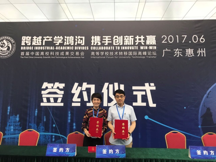 2017年6月22日至24日在广东省惠州市举办了首届“中国高校科技成果交易会”(简称:科交会)。由我校amjs澳金沙门欢迎您微纳光学元件课题组黄元申老师选送的“中阶梯光栅”项目获得优秀展示奖并完成现场签约。此外,我校还获得1项先进个人奖和2个现场签约项目。