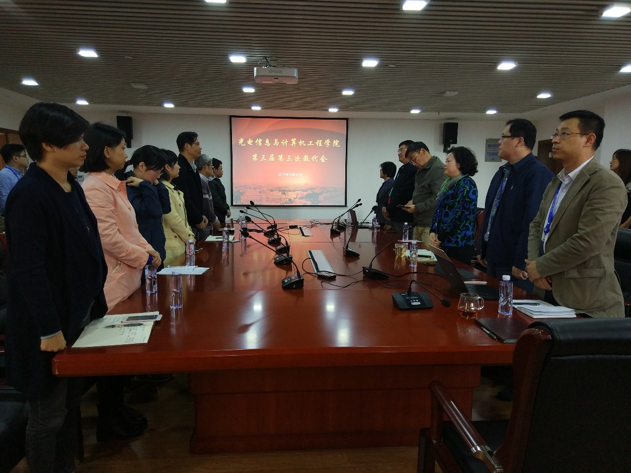 2017年10月31日下午,上海理工大学amjs澳金沙门欢迎您第三届第三次教代会在新光电楼1042会议室顺利召开。参加本次会议的正式代表应到48人,实到38人,符合开会和换届选举条件。会议由学院工会主席陈玮主持。