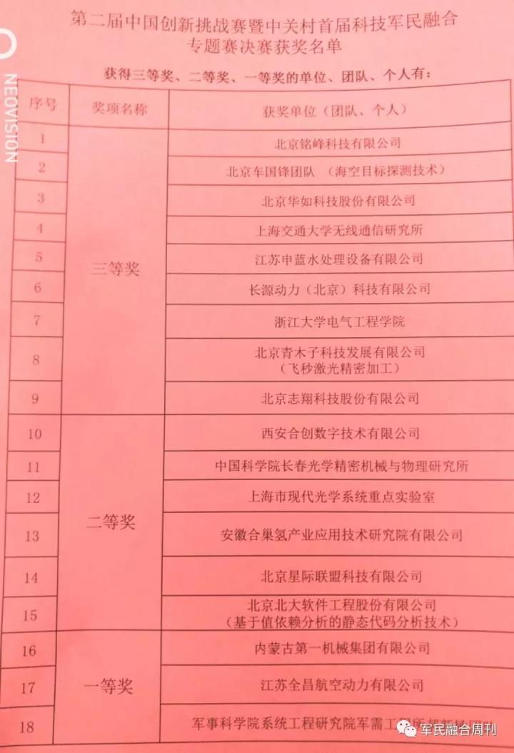 专题赛由科技部火炬高新技术产业开发中心、北京市中关村科技园区管理委员会和北京市海淀区人民政府主办,围绕“融合创新,科技兴军”主题,面向全国征集军民融合科技创新解决方案。赛事于9月16日在中关村国家自主创新示范区展示中心正式启动。作为第二届中国创新挑战赛的一项重要内容和北京市“双创周”的重要活动之一,本次专题赛主要以贯彻落实国家创新驱动发展战略和军民融合发展战略,争创建设中关村国家军民融合创新示范区为目标,立足中关村国家自主创新示范区、面向全国征集参赛作品,以期引导民营企业开展前沿关键核心技术研发,参与武器装备科研生产和维修保障,促进国防知识产权向民用领域转化应用和产业化,提升民营企业的核心竞争力。该赛事在科技部、军委机关职能部门、军兵种机关、军事科学院、国防大学的指导下,得到了北京市经济和信息化委员会、北京市政务服务管理办公室、北京市丰台区人民政府和石景山区人民政府的大力支持。据悉,获奖项目还可获得推荐纳入中关村国家自主创新示范区重大前沿项目政策支持范围、推荐纳入国家和北京市相关科技计划支持范围等多方面的政策支持。