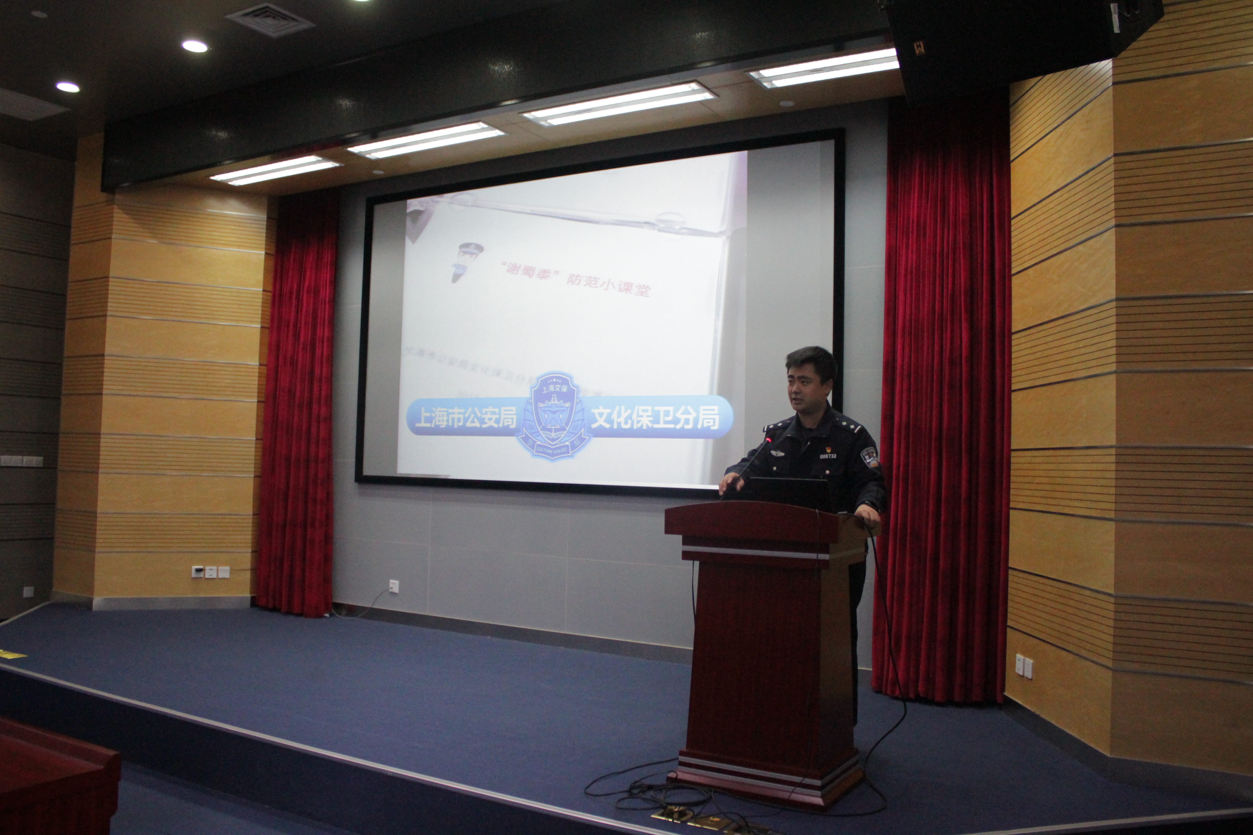 为进一步提高学生的基本安全防范意识,活动邀请到了上海市公安局文化保卫分局治安大队“网红警官”谢晔。在一个小时左右的讲座中,谢警官侧重从普及基本防范知识角度切入,先是着重对国家安全教育主题、高发的诈骗案例进行剖析,以期提高同学遵纪守法及防范诈骗的意识;接着又对常见的校园盗窃方式以视频形式进行实例讲解,并反复强调“防盗最重要的是要随时保持一个防盗意识”。谢警官以幽默风趣的口吻上了一堂图文并茂而收获颇丰的安全课程,让同学们在愉悦的氛围中掌握了国家安全、治安防盗知识。