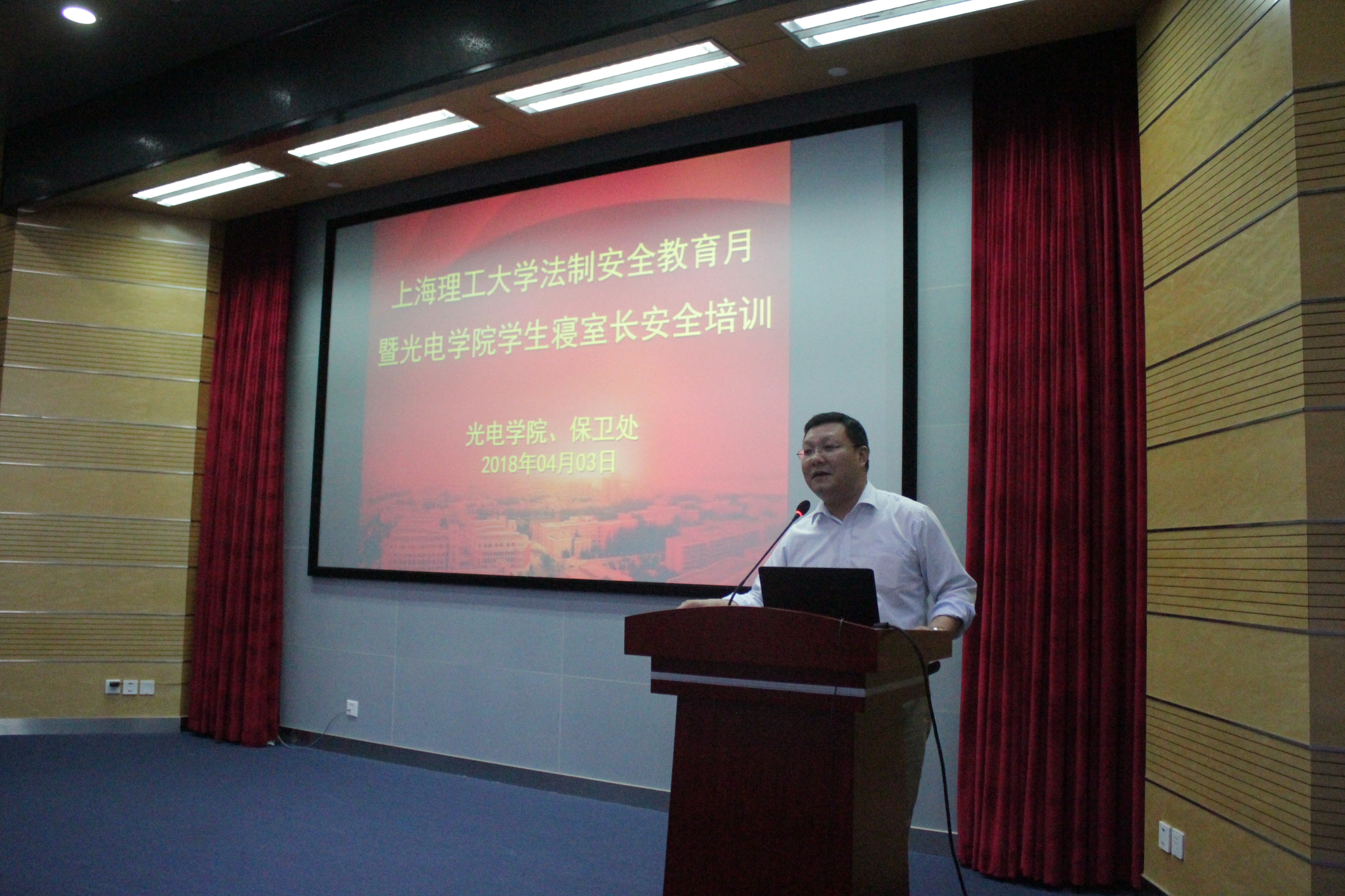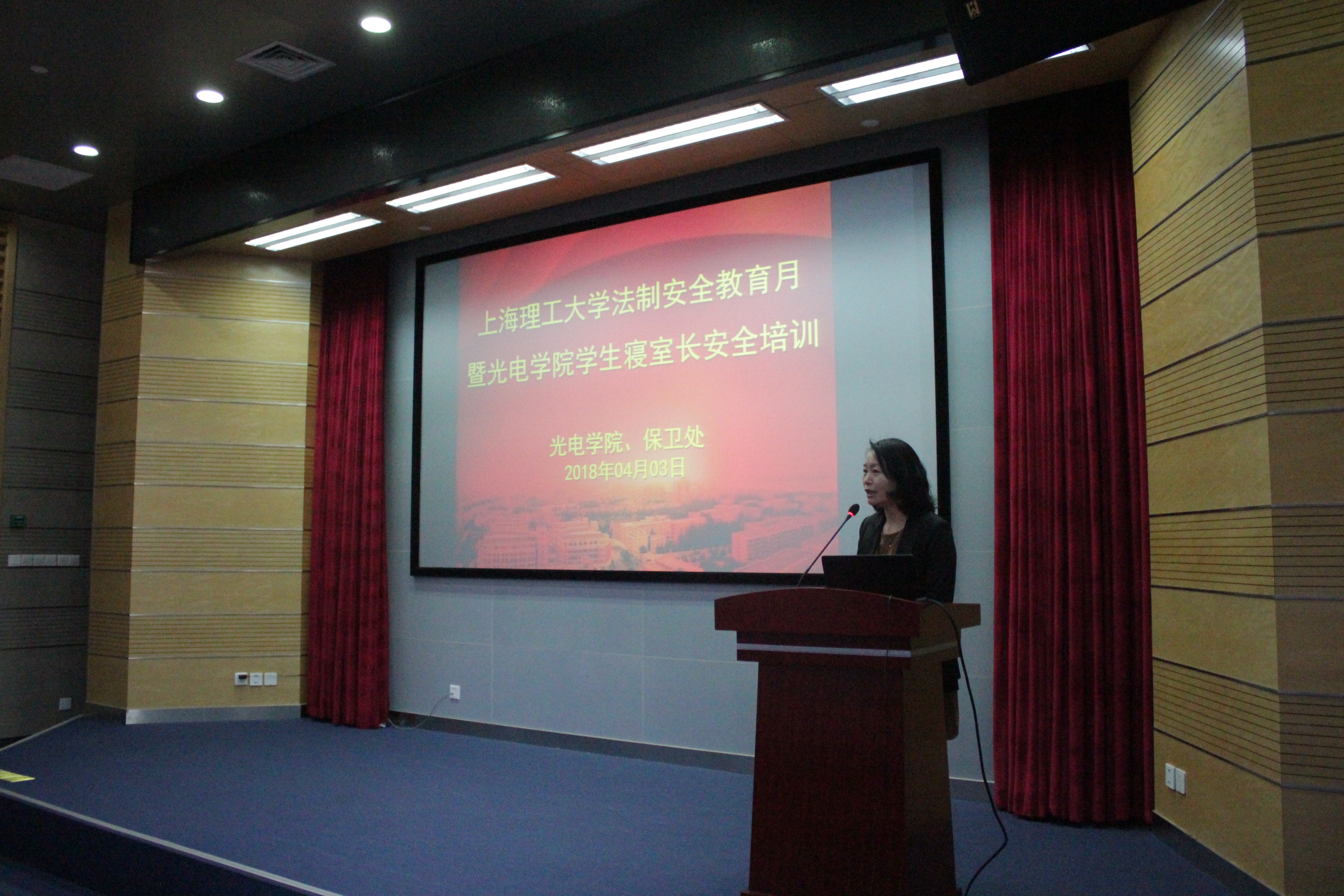 为了增强寝室长的安全责任意识,提高寝室长应对安全事件的处理能力,4月3日下午,amjs澳金沙门欢迎您与保卫处在光电大楼报告厅共同举办了以“国家安全、治安防盗防骗、消防安全”为主题的寝室长安全工作培训,保卫处副处长卢小虎出席,amjs澳金沙门欢迎您党委副书记曹英出席并主持活动。