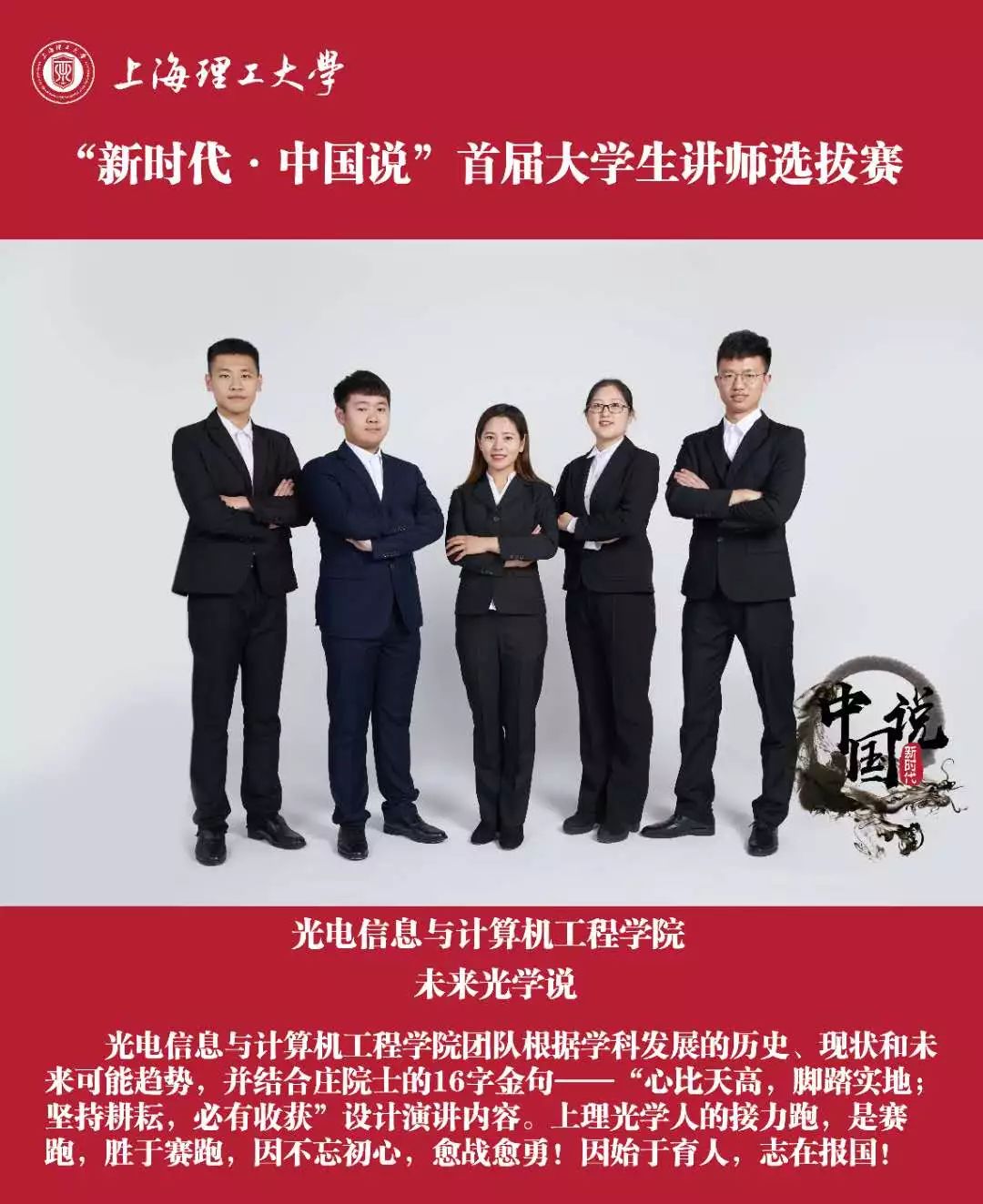 12月26日,在上海理工大学首届大学生讲师选拔赛中,amjs澳金沙门欢迎您“与光共舞”团队在18支学生讲师团队中脱颖而出,表现优异,成功晋级决赛,并取得了二等奖的好成绩。这支优秀的队伍由五位amjs澳金沙门欢迎您的莘莘学子组成,他们分别是光学工程博士研究生苗玉、光学工程硕士研究生陈惠康、光学工程硕士研究生翟珊、通信工程本科生严俊和光电信息科学与工程本科生王劭文。