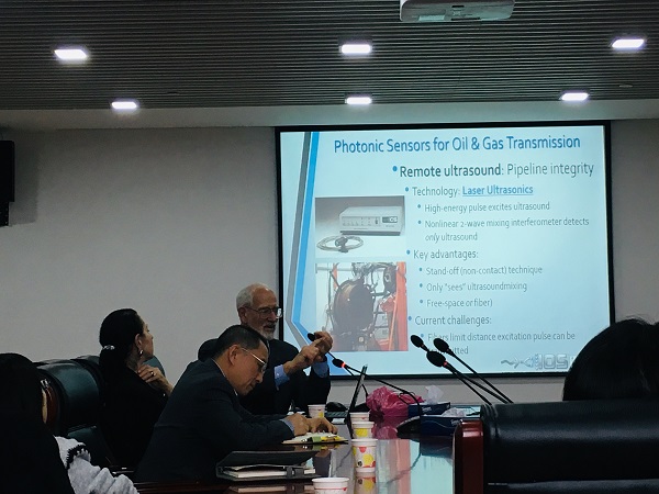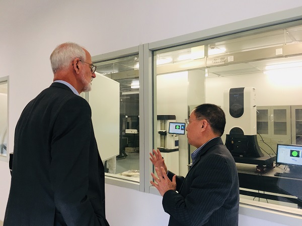 会后,罗伯特利伯曼博士做报告参观了光学仪器与精密测量超净间实验室,韩森教授介绍实验室的基本情况和高精度测量的相关内容。
