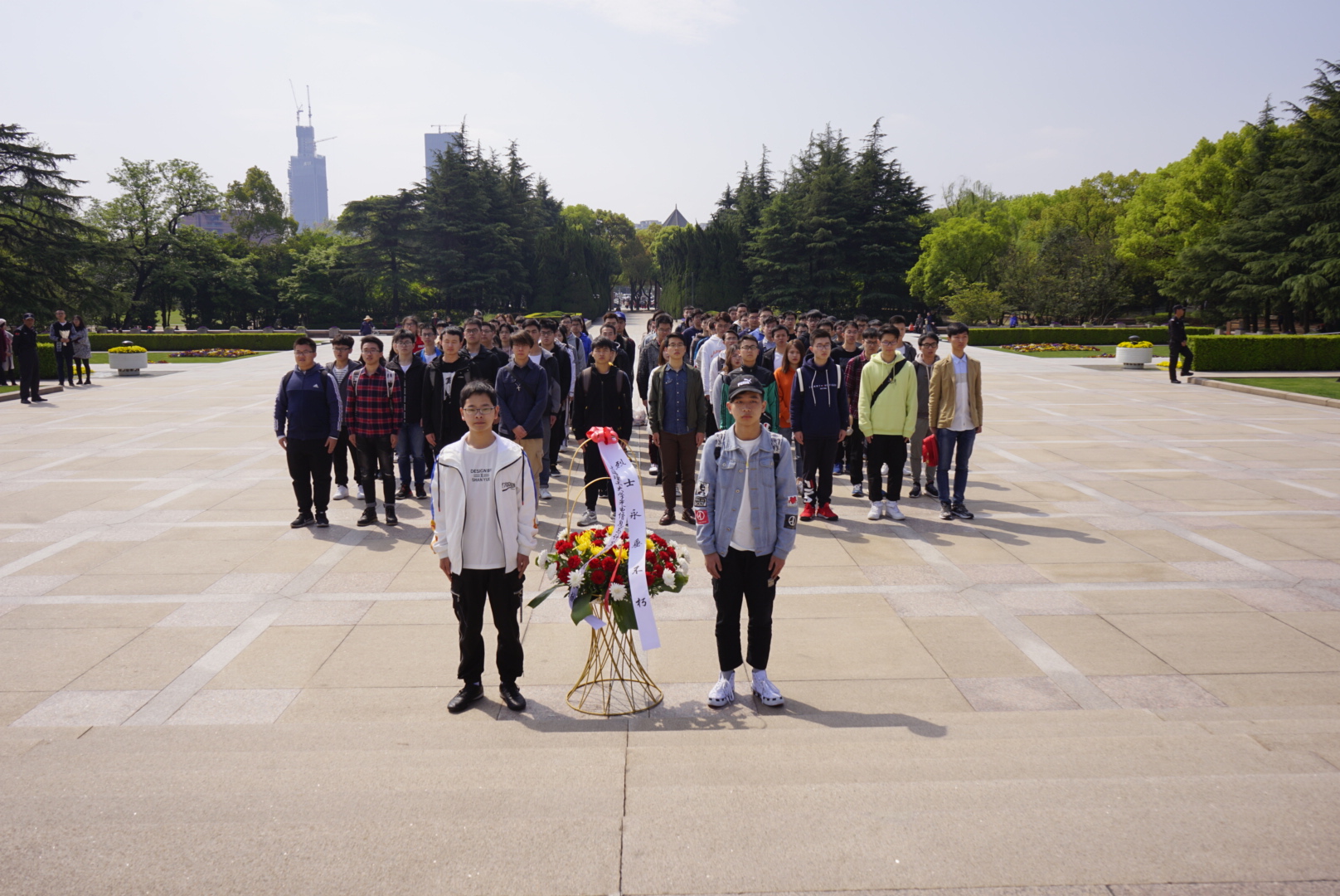 10点20分,amjs澳金沙门欢迎您学生代表在纪念碑集合,怀着对这些在战争中牺牲的烈士的崇高敬意开始了严肃、庄重的鲜花祭奠仪式。