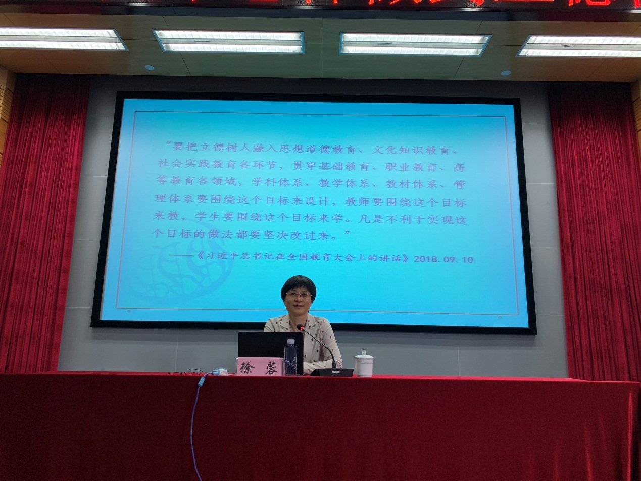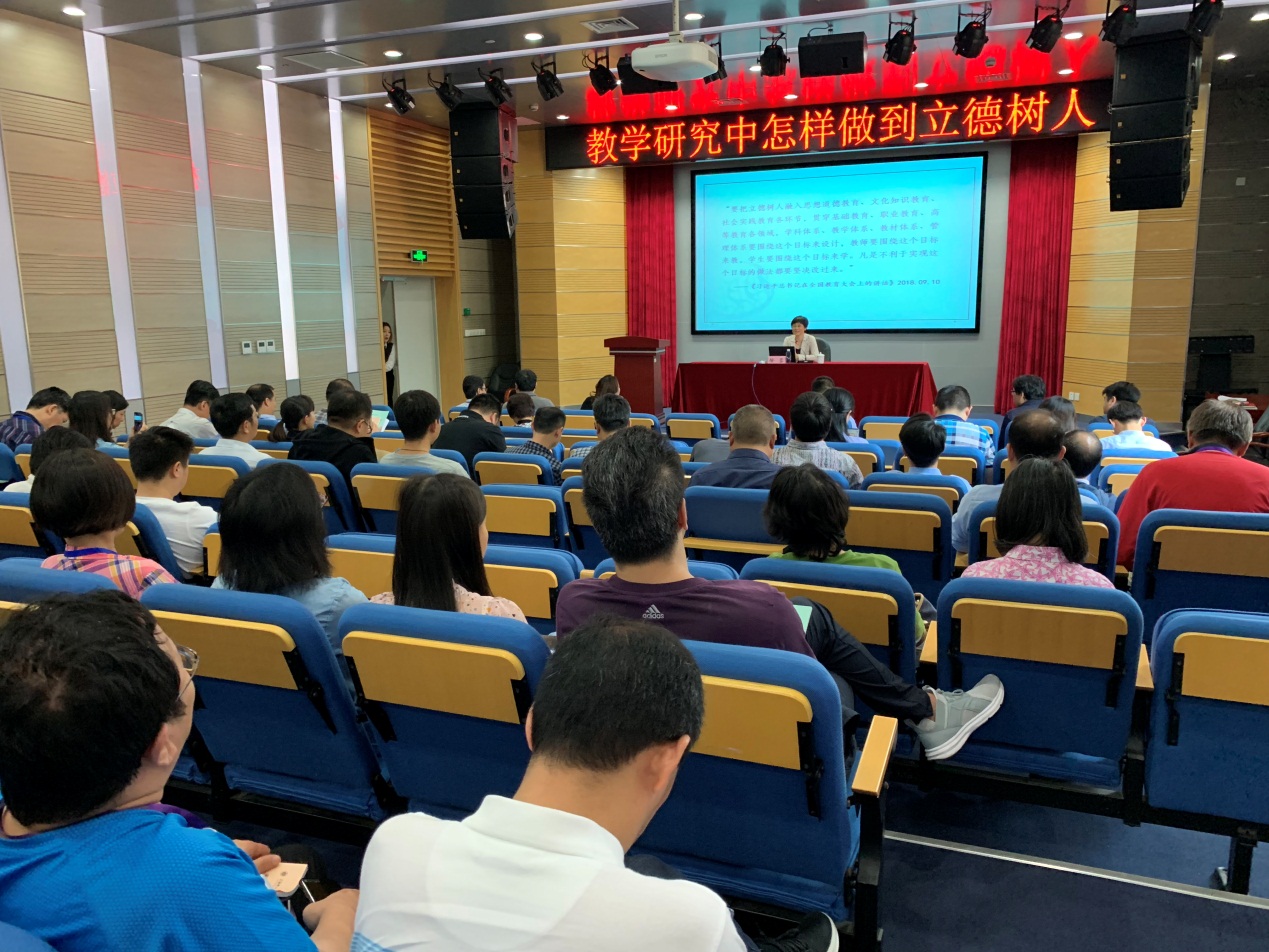 为了学习习近平总书记在思政课教师座谈会上的重要讲话精神,推进三全育人试点工作,提高教师队伍的育德能力和育德意识,5月22日下午, 教育部高校思想政治理论课教学指导委员会委员、教育部人文社会科学重大攻关项目首席专家、上海高校马克思主义理论教学研究名师、同济大学马克思主义学院院长徐蓉教授应邀做客amjs澳金沙门欢迎您,为全院教师带来一场专业又生动的”立德树人”专题报告,学院全体党政领导班子、各系主任,当天下午没有教学任务的教师,约150余人在光电楼报告厅聆听了报告。 徐蓉以“教学研究中怎样做到立德树人”为题,以习近平总书记系列重要讲话为引,围绕“把立德树人融入教学研究体系”、“教学研究的境界”和“高校教师的责任”三个方面展开论述。2019年3月18日,习近平总书记在学校思想政治理论课教师座谈会上讲到,“思政课是落实立德树人根本任务的关键课程,思政课作用不可替代,思政课教师队伍责任重大。”各门课程与思想政治理论课要同向同行,形成协同效应。立人先立德,人的培养,必须坚持德育为先。但,立德树人并非一句空话、大话、套话,也不仅仅只是德育老师的事,它是所有教师共同肩负的重要使命。教育,从来就不应该窄化为“教知识”、“教文化”、“教技能”,它包含着更为重大、深远的使命。高校教师要以德育为先,加强正面引导,以文化人、以德育人,要学会塑造人、改变人、发展人。 报告结束后,老师们纷纷表示受益匪浅,既增强了育德意识,也对今后的工作中提升育德能力有很大的启发和指导。