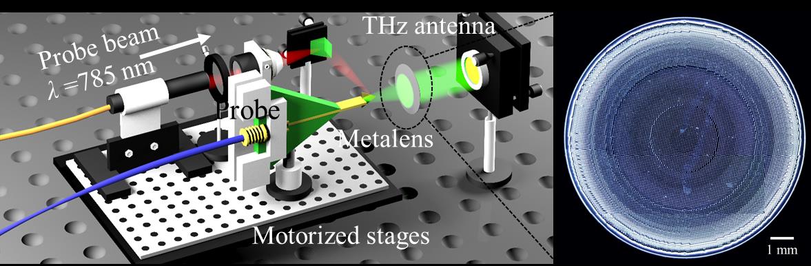 图1:太赫兹近场扫描显微镜和消色差透镜样品形貌图