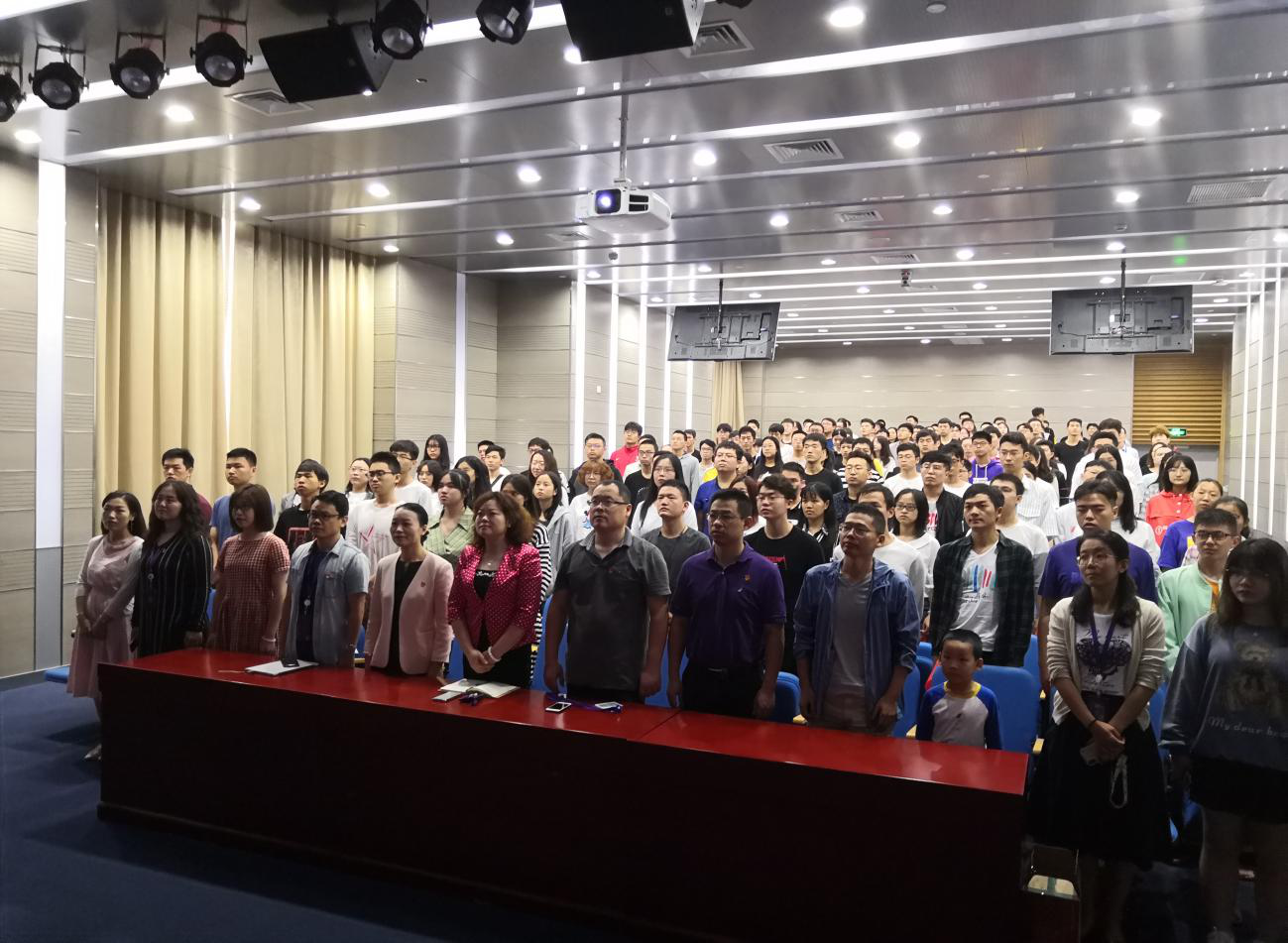 2019年10月1日上午9点,庆祝中华人民共和国成立70周年阅兵式在天安门广场隆重举行。amjs澳金沙门欢迎您组织全体学院领导、在校学生、教师、辅导员集体观看了阅兵式直播。