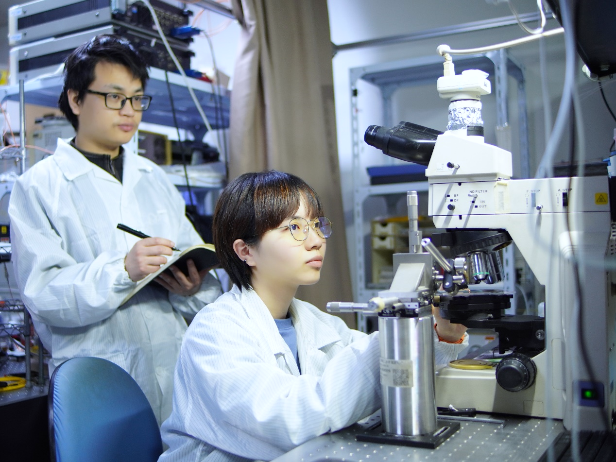 图2.论文共同第一作者博士生令狐双艺(右一)和博士生顾兆麒(右二)。