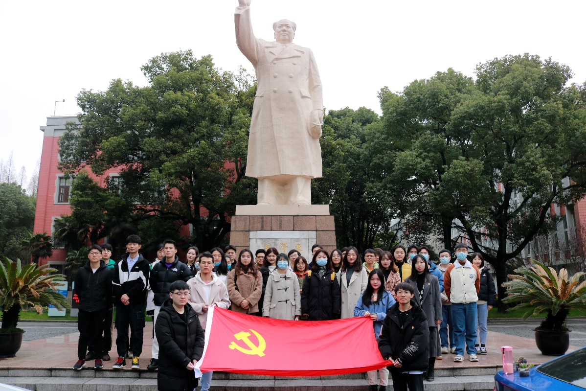 活动结束后,党员同志们一起来到学校毛主席像前对录制建党百年的献礼祝福语视频,用饱满的热情、青春的力量大声喊出对祖国母亲的祝福。