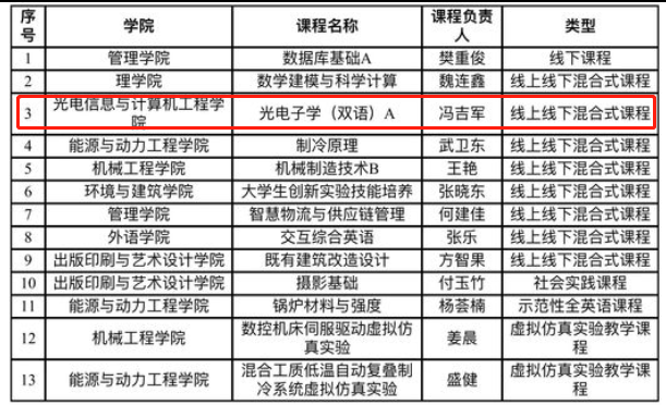 近日,上海市教育委员会发布《上海市教育委员会关于公布2022年度上海高等学校一流本科课程认定结果的通知》(沪教委高〔2023〕2号),金沙官网冯吉军教授负责的《光电子学(双语)A》被认定为2022年度上海高等学校一流本科课程(入选线上线下混合式课程)。截至目前,学院共获得认定4门上海高等学校一流本科课程。