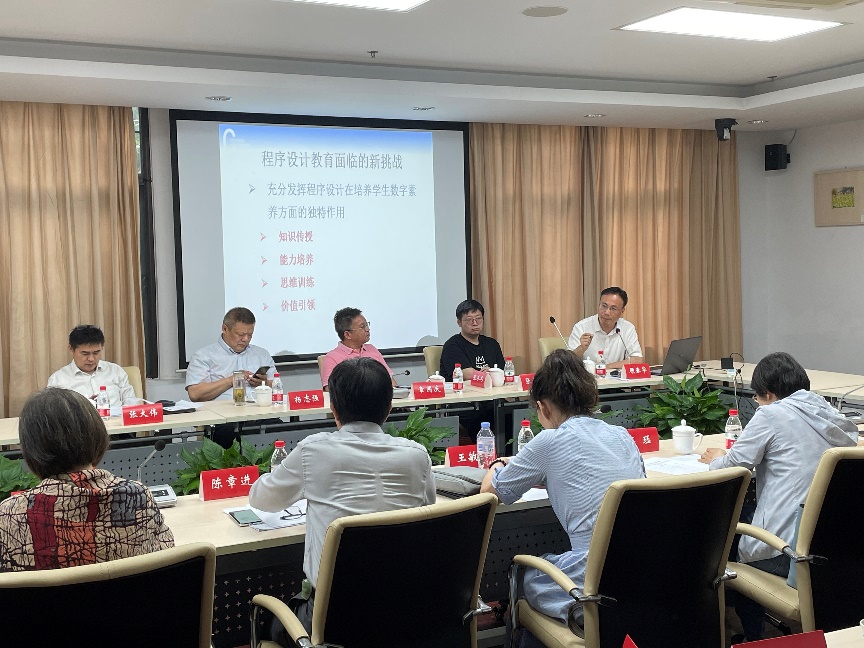 会上,上海理工大学党委副书记、教育部计算机教学指导委员会委员顾春华教授在会上作了“程序设计教育中提升学生数字素养的思考”主题发言,通过从知识传授、能力培养、思维训练、价值引领四个方面入手,与大家共同探讨构建“教训考赛”生态环。