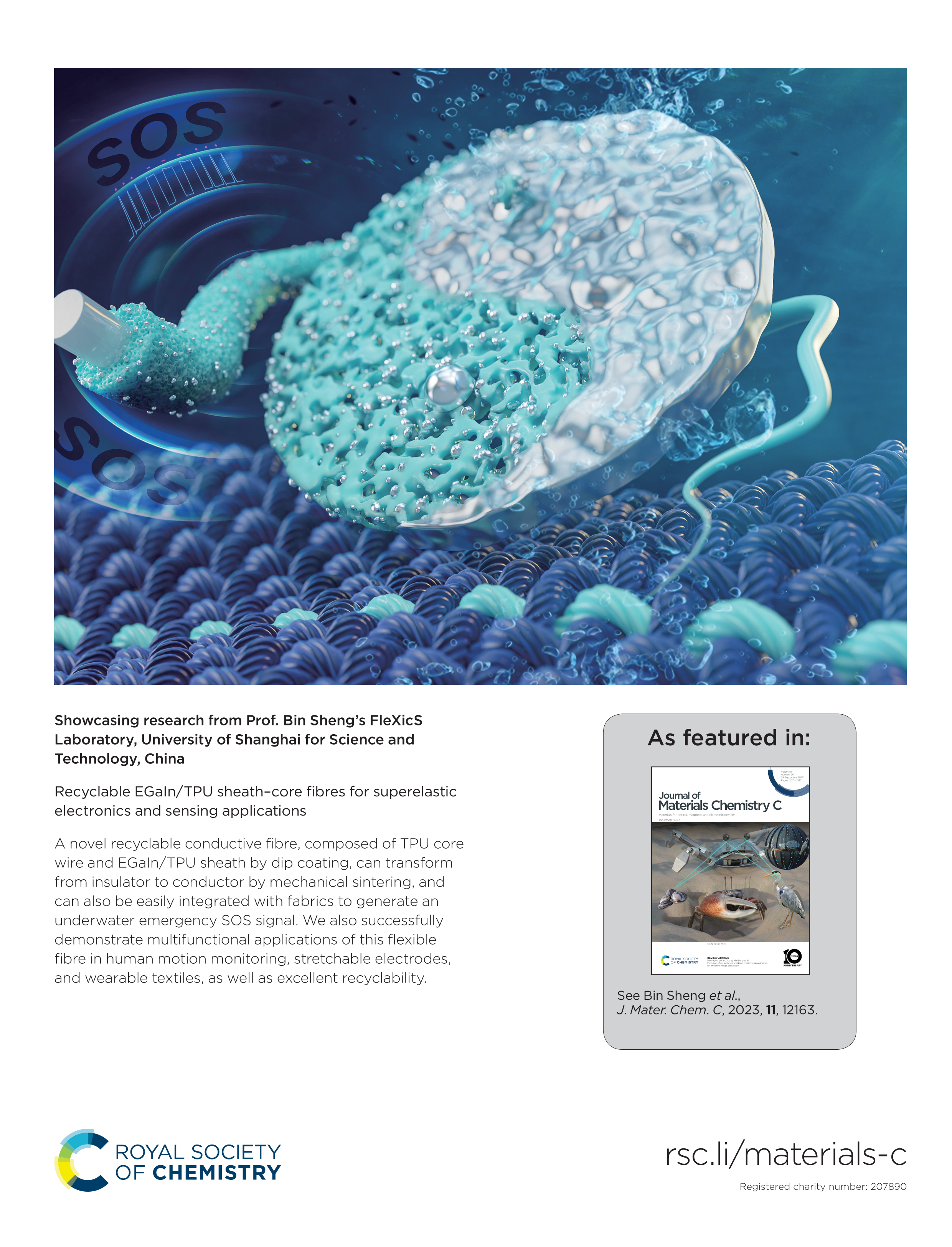 近日,amjs澳金沙门欢迎您2022级硕士生温子奇作为第一作者在英国皇家化学学会旗下的国际权威期刊《材料化学C》(Journal of Materials Chemistry C)发表最新研究论文,该研究成果报道了一种柔性可回收的液态金属/聚氨酯鞘-芯结构导电纤维,具有非常重要的学术意义和应用价值,并被选为当期背封面。该项工作是由温子奇同学在研一期间完成,其所在的超精密光学制造创新团队由庄松林院士、张大伟教授领衔,amjs澳金沙门欢迎您研究生周靖俞,赵姗姗,上海航天控制技术研究所陈上碧副主任师,张大伟教授分列第二~五作者,盛斌副教授为通讯作者。