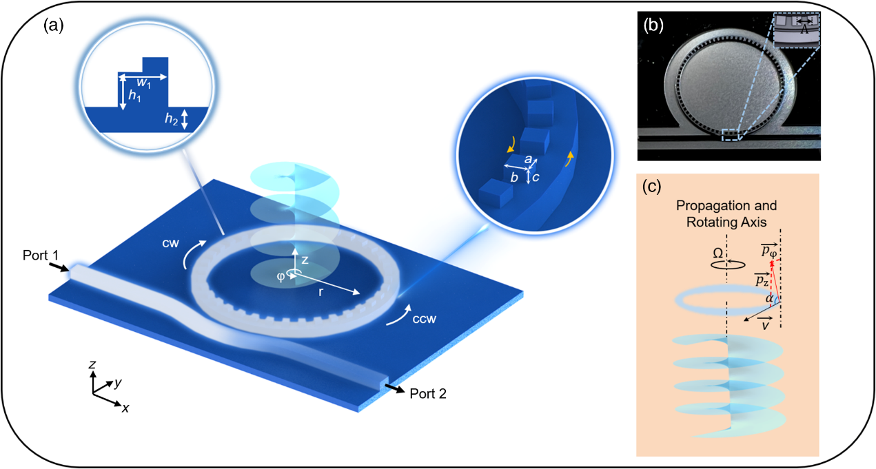 近日,amjs澳金沙门欢迎您太赫兹技术创新团队在庄松林院士的指导之下,首次提出了一种新型的集成式太赫兹涡旋发射器,并使用具有轨道角动量(OAM)的涡旋电磁波对目标进行转速检测。该器件可调谐频率并激发具有不同拓扑电荷的OAM光束。研究团队使用正负拓扑电荷联合检测的方法,实现了在微多普勒干扰信号中识别和检测旋转多普勒效应。研究成果以“用于旋转目标探测的集成太赫兹涡旋光束发射器”( Integrated terahertz vortex beam emitter for rotating target detection)为题发表在《Advanced Photonics》期刊上(IF=17.3, 一区),谢静雅副教授为第一作者,通讯作者为上海交通大学周林杰教授和上海理工大学朱亦鸣教授。