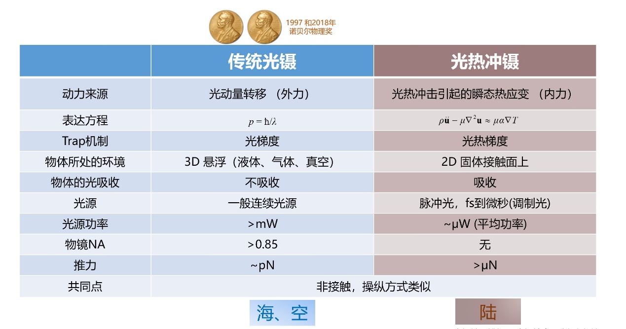 图5 传统光镊与光热冲镊对比