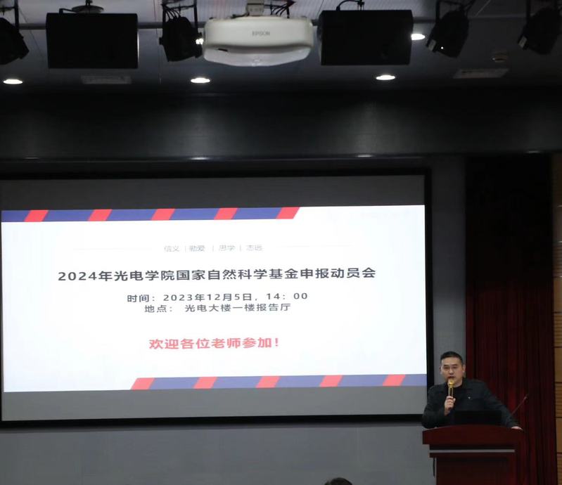 为提高金沙官网国家自然科学基金项目(以下简称“基金”)申报质量,使初次申报的青年教师全面了解基金并准确、及时地掌握基金申报的注意事项,学院于12月5日下午在光电大楼一楼报告厅举办2024年基金申报动员会。学院教师及新进博士后共130余人参加了动员会,会议由张大伟常务副院长院长主持。