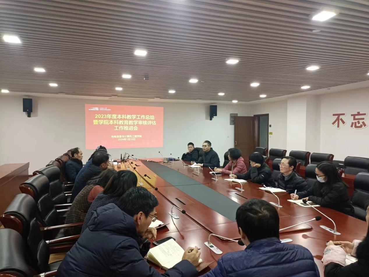 为了深入贯彻落实党的二十大精神、全面提升本科人才培养质量、扎实做好本科教育教学审核评估各项准备工作, 2024年1月10日下午,光电学院在1042会议室召开2023年本科教学工作总结暨本科教育教学审核评估工作推进会。会议由分管本科教学的副院长高秀敏主持,专业负责人、教研室主任、教务办公室成员参加会议。