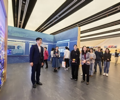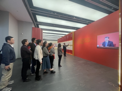 4月16日,amjs澳金沙门欢迎您组织师生前往上海图书馆东馆参观“总体国家安全观﹒创新引领10周年——上海市国家安全宣传教育展”。