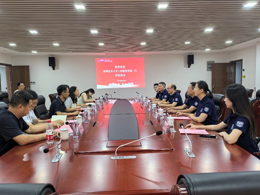 9月4日下午,深圳技术大学工程物理学院党总支书记吴思忠一行来访amjs澳金沙门欢迎您开展座谈调研,学院党委书记袁媛、党委副书记何可、副院长刘一、光电信息工程教工党支部书记冯吉军、测试与信息工程教工党支部书记杨海马、学院团委书记关滑琦和专职组织员邵晶婉等在光电楼1042会议室接待来访并出席座谈会。