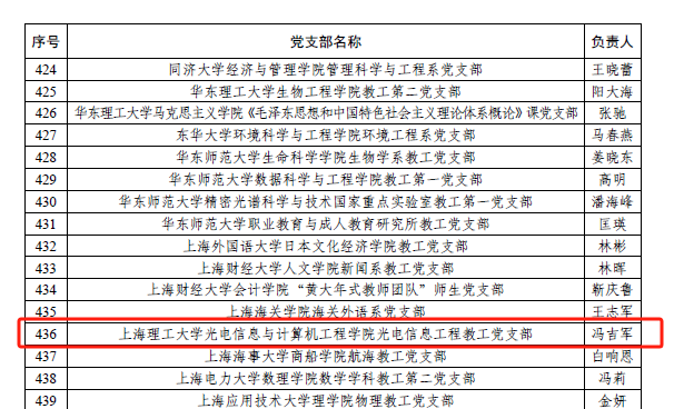 近日,教育部办公厅公布了全国高校“双带头人”教师党支部书记“强国行”专项行动团队名单,由金沙官网冯吉军教授领衔的光电信息工程教工党支部成功入选(全校仅一个)。