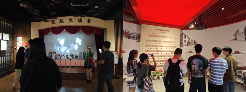 在国歌展示馆内,同学们怀着崇敬的心情,逐一参观了各个展厅。丰富的历史图片、珍贵的实物展品以及震撼人心的多媒体展示,生动地再现了国歌诞生的艰难历程和重大意义。参观过程中,党员们认真聆听线上讲解,不时驻足观看。在观看与国歌相关的纪录片时,大家更是全神贯注,纪录片结束后一起唱国歌,大家都被国歌所蕴含的强大力量深深打动。