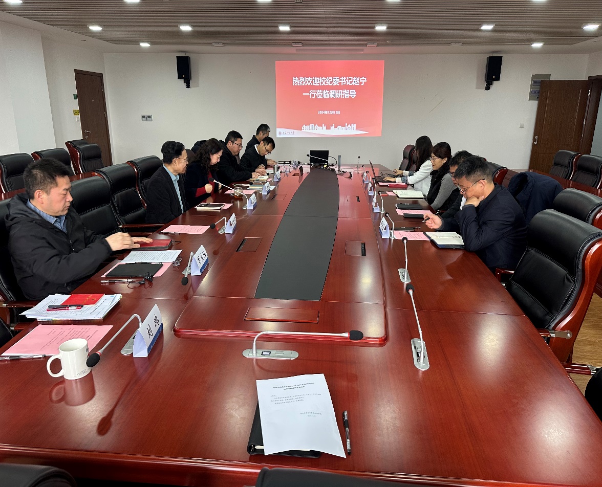 12月12日下午,校党委副书记、纪委书记赵宁来金沙官网调研。学校纪委副书记叶磊、巡察办副主任周瑞宏等陪同调研。中国工程院院士、学院院长庄松林,学院党委书记袁媛、常务副院长张大伟,学院其他党政领导班子成员参加调研会。
