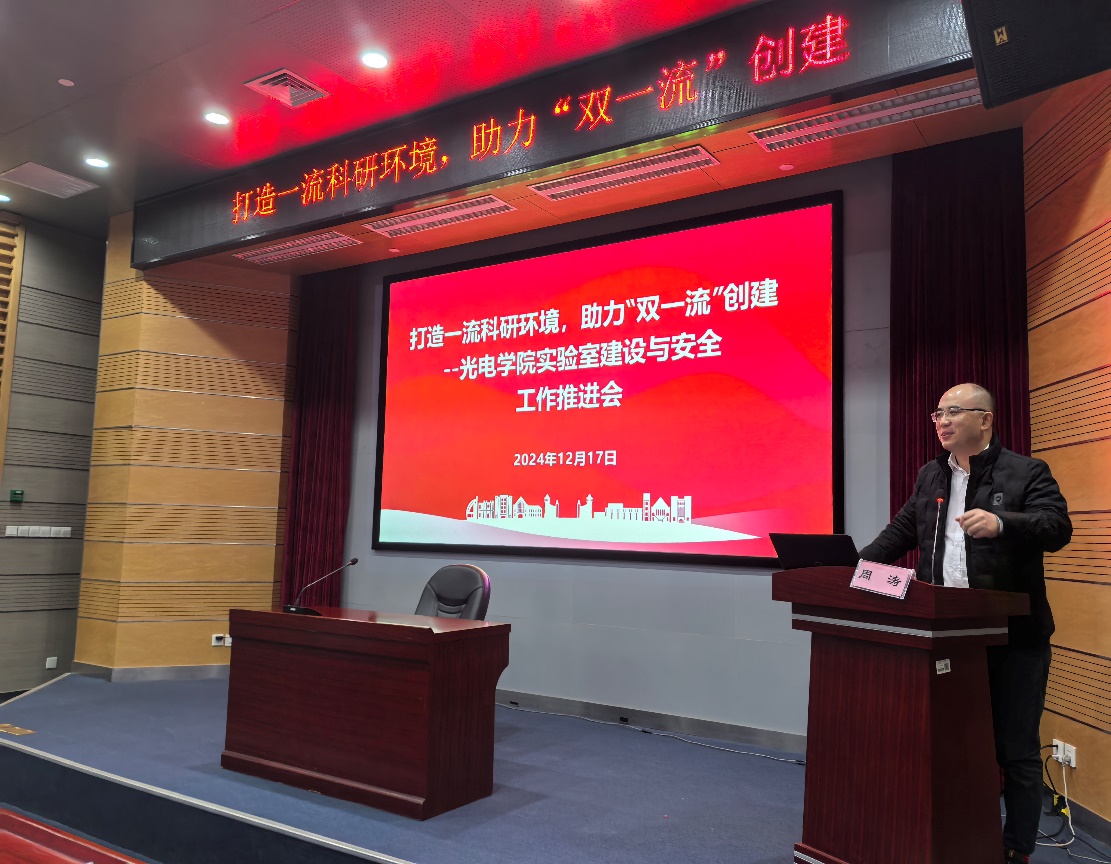 张大伟强调,学院正处在高质量发展的关键阶段,实验室建设是与学院人才培养、科学研究等融会贯通的重要工作,伴随着发展机遇,我们也面临一些问题和挑战。学院积极采取一系列措施,包括引入智能化管理手段、优化实验室布局、加强安全培训等,全面提升实验室建设与管理水平。学院实验室体量大,建设任务重,希望全院上下警钟长鸣、筑牢安全基石;持续完善责任体系、健全规章制度、强化教育培训、加强风险防控;学习校内外、国内外先进实验室的建设经验,师生齐心协力,打造一流科研环境,助力学院和学校“双一流”创建工作。