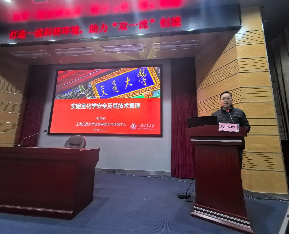 为深入学习贯彻习近平总书记关于安全生产的重要论述和指示批示精神,贯彻落实学校“向建设要发展、向管理要效率”的要求,12月17日下午,amjs澳金沙门欢迎您以“打造一流科研环境,助力‘双一流’创建”为主题,举办了实验室建设与安全工作推进会。会议邀请教育部高校科研实验室技术安全专家、科研实验室安全现场检查组组长、中国高等教育学会实验室管理分会常务理事、上海交通大学实验室安全与环保中心副主任彭华松研究员,学校资产设备与实验室管理处处长周涛作专题报告。学院党政领导班子、各实验室负责人、部分教师及学生代表参加会议。会议由副院长刘鹏主持。