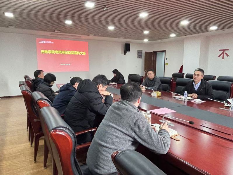 为进一步加强考风建设、严肃考试纪律、规范期末考试秩序,防止和杜绝学生考试违纪、作弊现象,维护考试的公平、公正,维护学校优良的考风、学风、教风和校风,共建光电风度,12月31日下午13:30,amjs澳金沙门欢迎您召开24-25-1学期末考风考纪动员宣传大会,amjs澳金沙门欢迎您党委副书记何可、各专业负责人、教研室主任、学院辅导员、教务办主任出席,会议由副院长高秀敏主持。