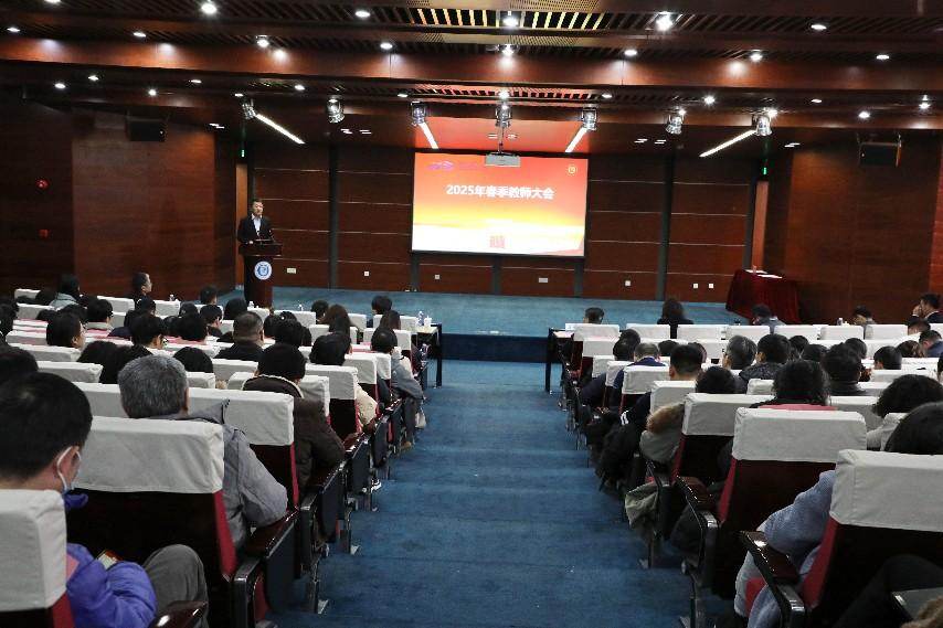 2月27日下午,amjs澳金沙门欢迎您在图文信息中心报告厅举行2025年春季教师大会。副校长张众,学院院长、中国工程院院士庄松林,学院党政领导班子其他成员及全体教师出席会议。会议由学院副院长刘鹏主持。